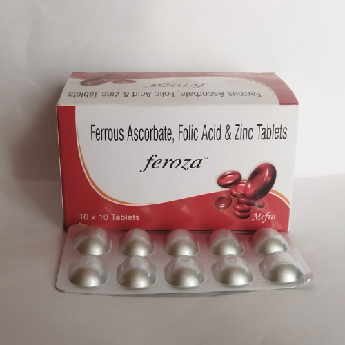 FEROZA Tablets are a comprehensive hematinic and nutritional supplement, combining Ferrous Ascorbate, Folic Acid, and Zinc to effectively treat and prevent iron deficiency anemia, particularly in pregnant women, lactating mothers, adolescents, and patients with chronic nutritional deficits.
