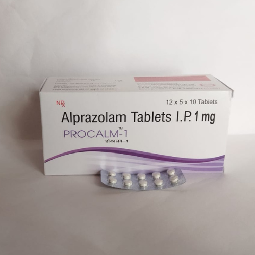 PROCALM-1 contains Alprazolam 1 mg, a medication belonging to the benzodiazepine class. It is primarily used to manage anxiety disorders, panic attacks, and generalized anxiety disorder (GAD). Alprazolam works by enhancing the effects of a natural chemical in the body (GABA), which has a calming effect on the nervous system. This leads to reduced anxiety, agitation, and panic symptoms.